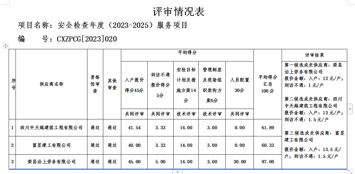 安全檢查年度(2023-2025)服務(wù)項(xiàng)目結(jié)果公告