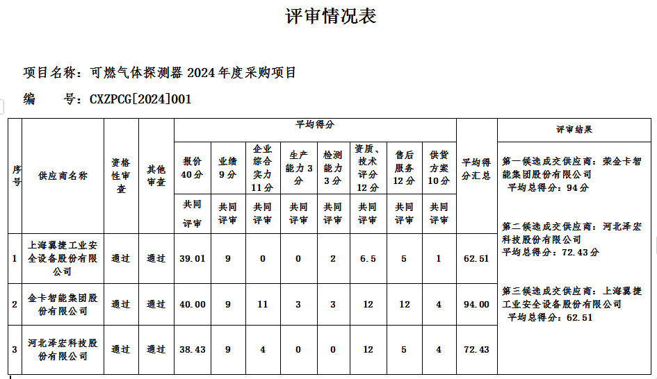 可燃?xì)怏w探測(cè)器2024年度采購(gòu)項(xiàng)目結(jié)果公告