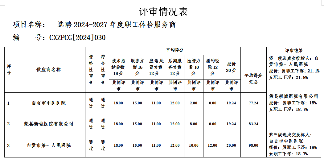 選聘2024-2027年度職工體檢服務(wù)商結(jié)果公告